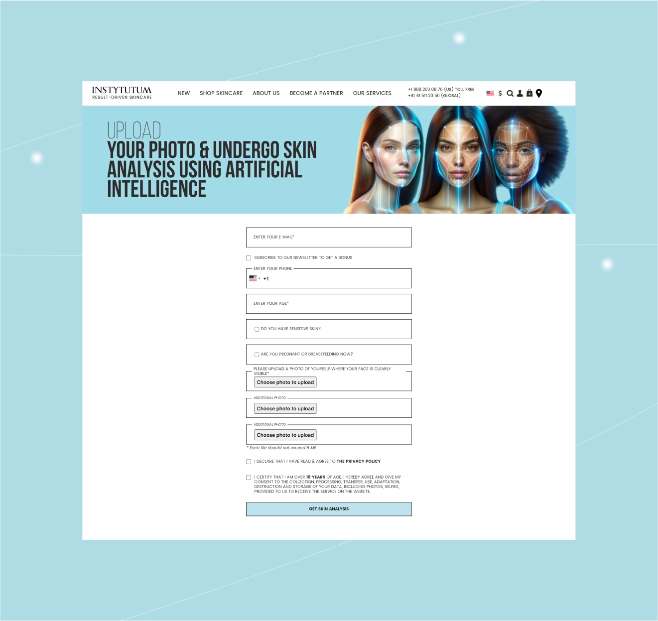Customised omnichannel eCommerce platform for sales in several different markets with multicurrency and multilingualism. With the introduction of an AI solution for product recommendations based on the recognition of facial skin problems.